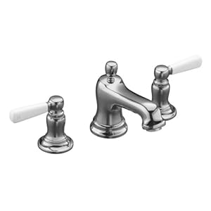 Kohler K-10577-4P-CP Bancroft widespread lavatory faucet with White ceramic lever handles, Polished ChromeInspired by early 1900s American design, Bancroft; faucets combine a nostalgic aesthetic with solid brass construction to achieve universal appeal and reliable performance for today's bathroom. This widespread lavatory faucet with White ceramic lever handles embodies a traditional elegance that complements the Bancroft Suite of products. Flexible stainless steel supplies enable a fast and easy installation.